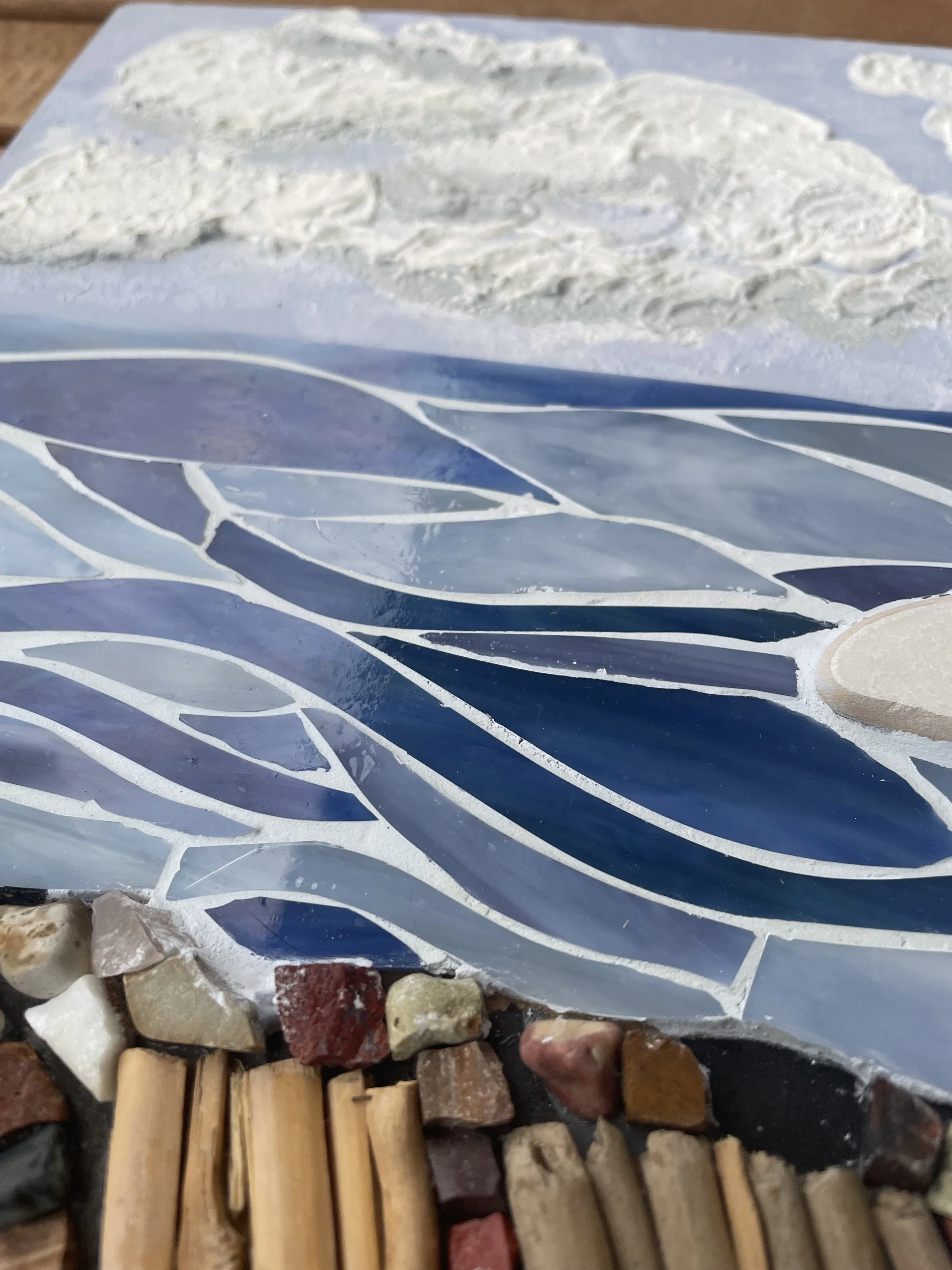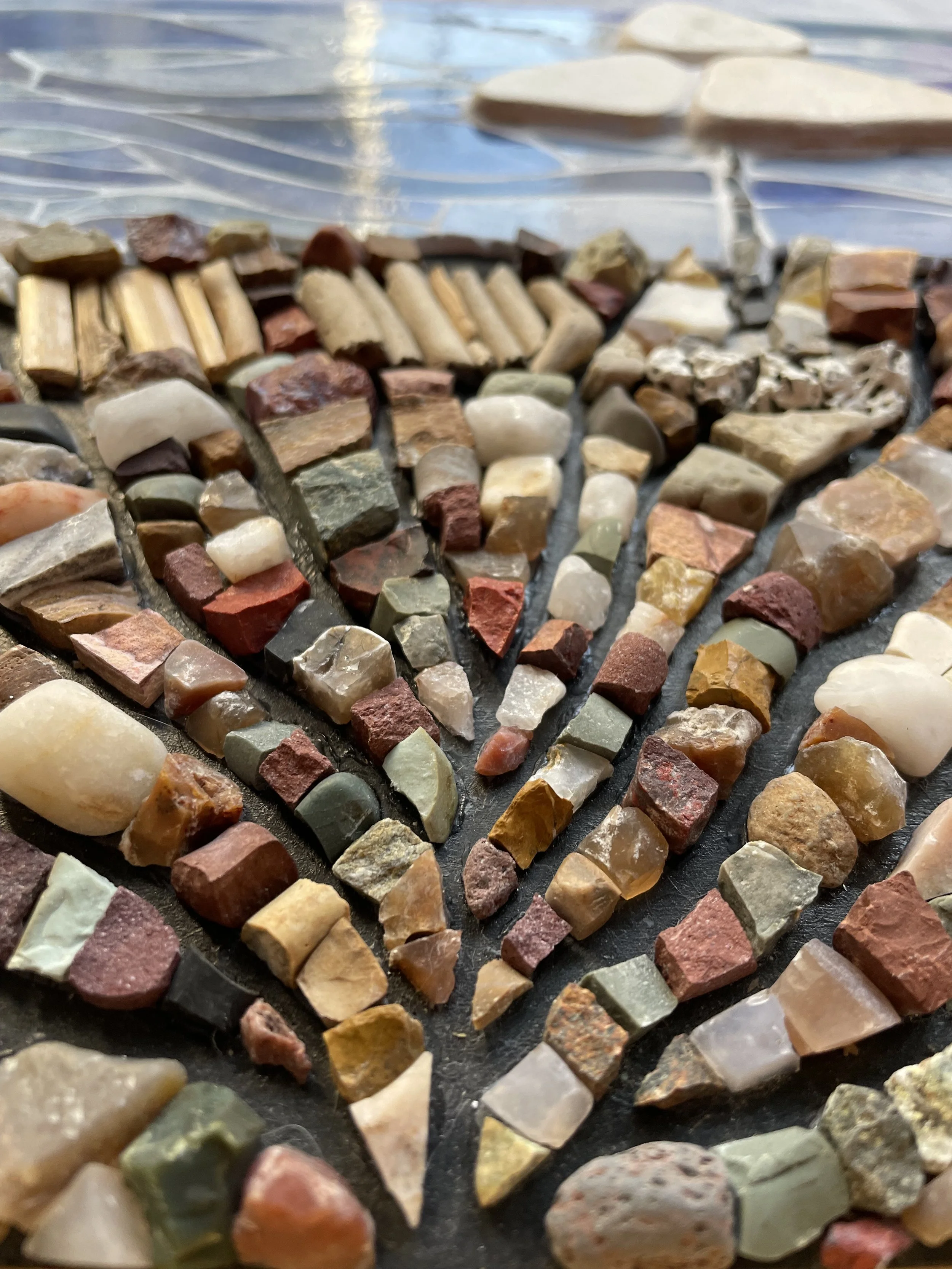 Bu mozaik, 2022 yazında Assos’ta geçirdiğim bir dönemin ardından ortaya çıktı. Sahilde yürürken topladığım taşlar, o zamanı hatırlatıyor bana. Hem o günlerin sessizliğini hem de içimdeki değişimi taşıyorlar.
