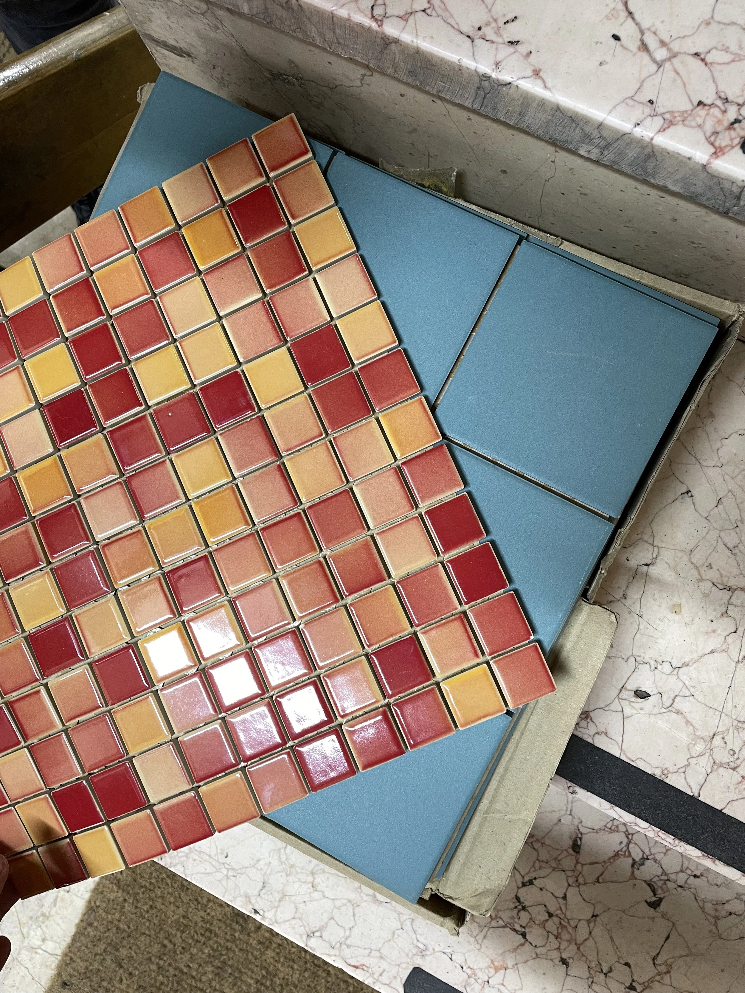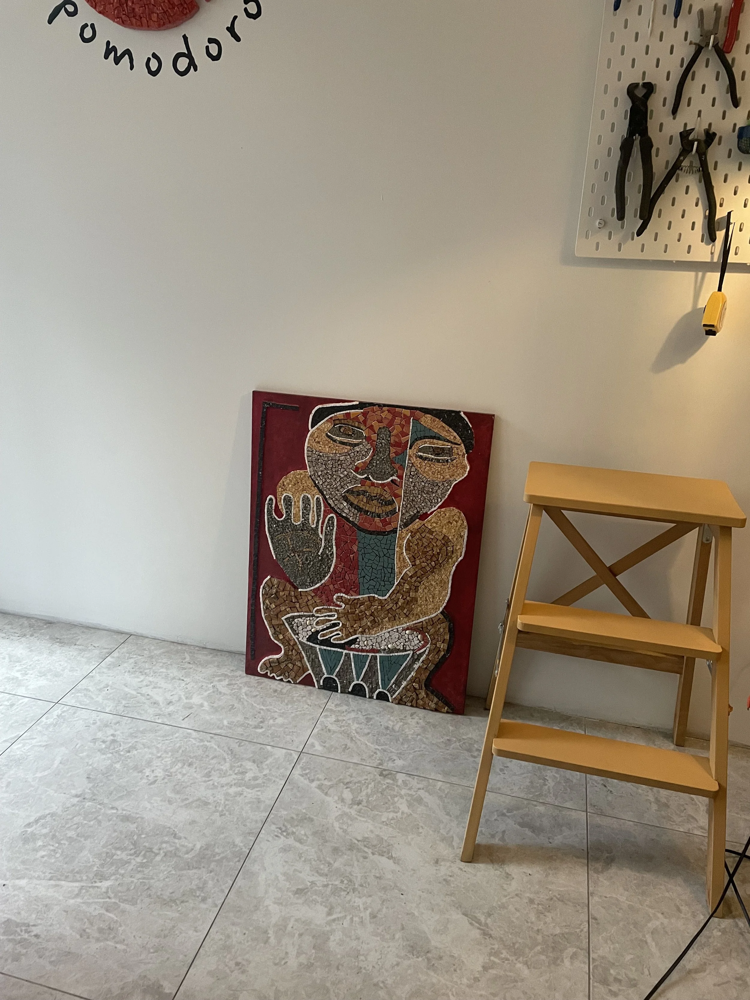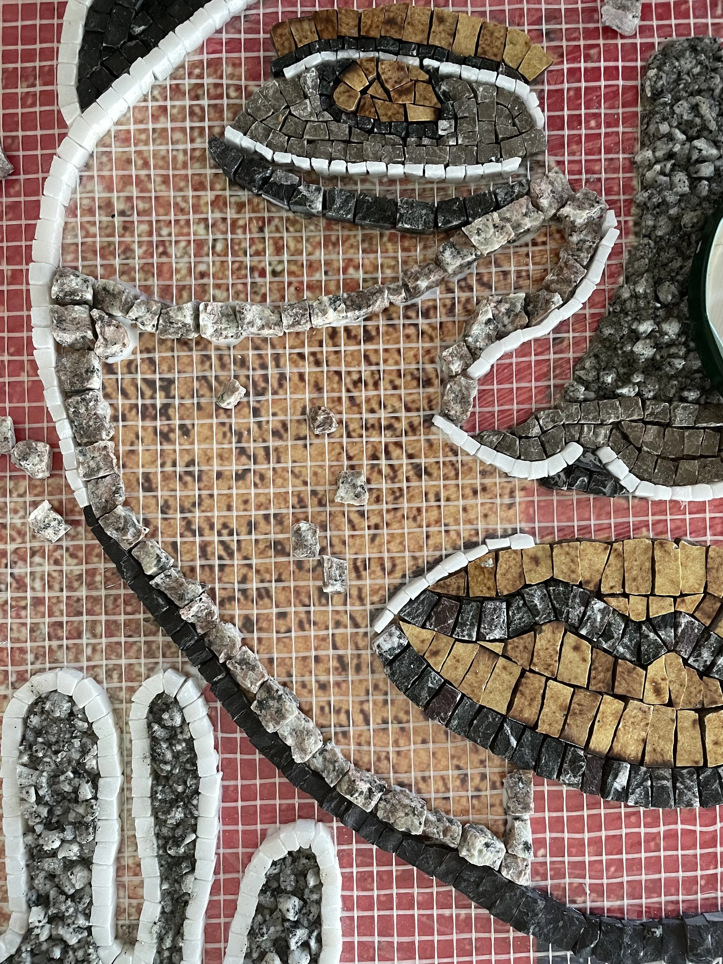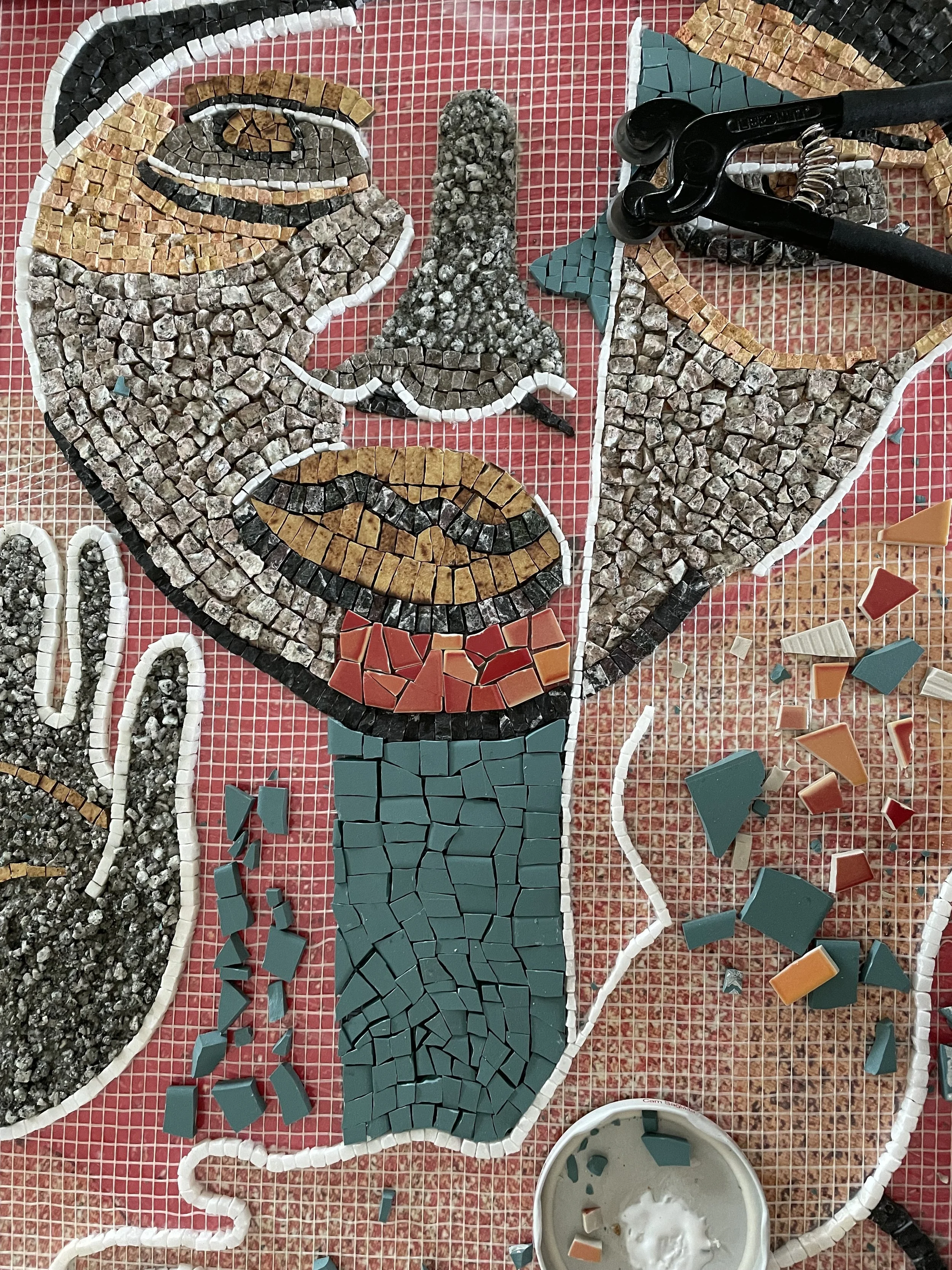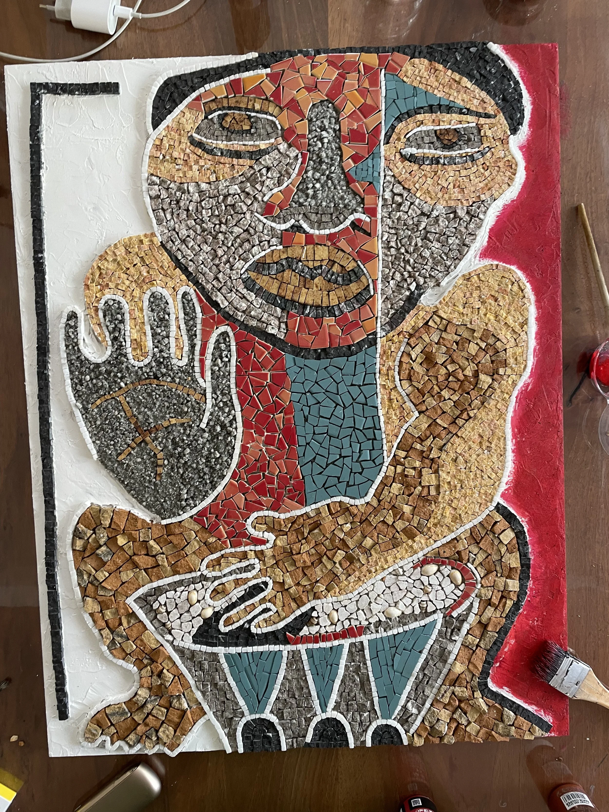 Koca Adam, 2018’de Maui’de bulunduğum sırada aldığım bir kahve paketinin üzerindeki soyut illüstrasyondan ilhamla ortaya çıktı. Yıllar sonra bu figür aklıma yeniden geldi ve temel mozaik eğitimimi tamamladıktan sonra ilk kişisel projem olarak hayata geçti.