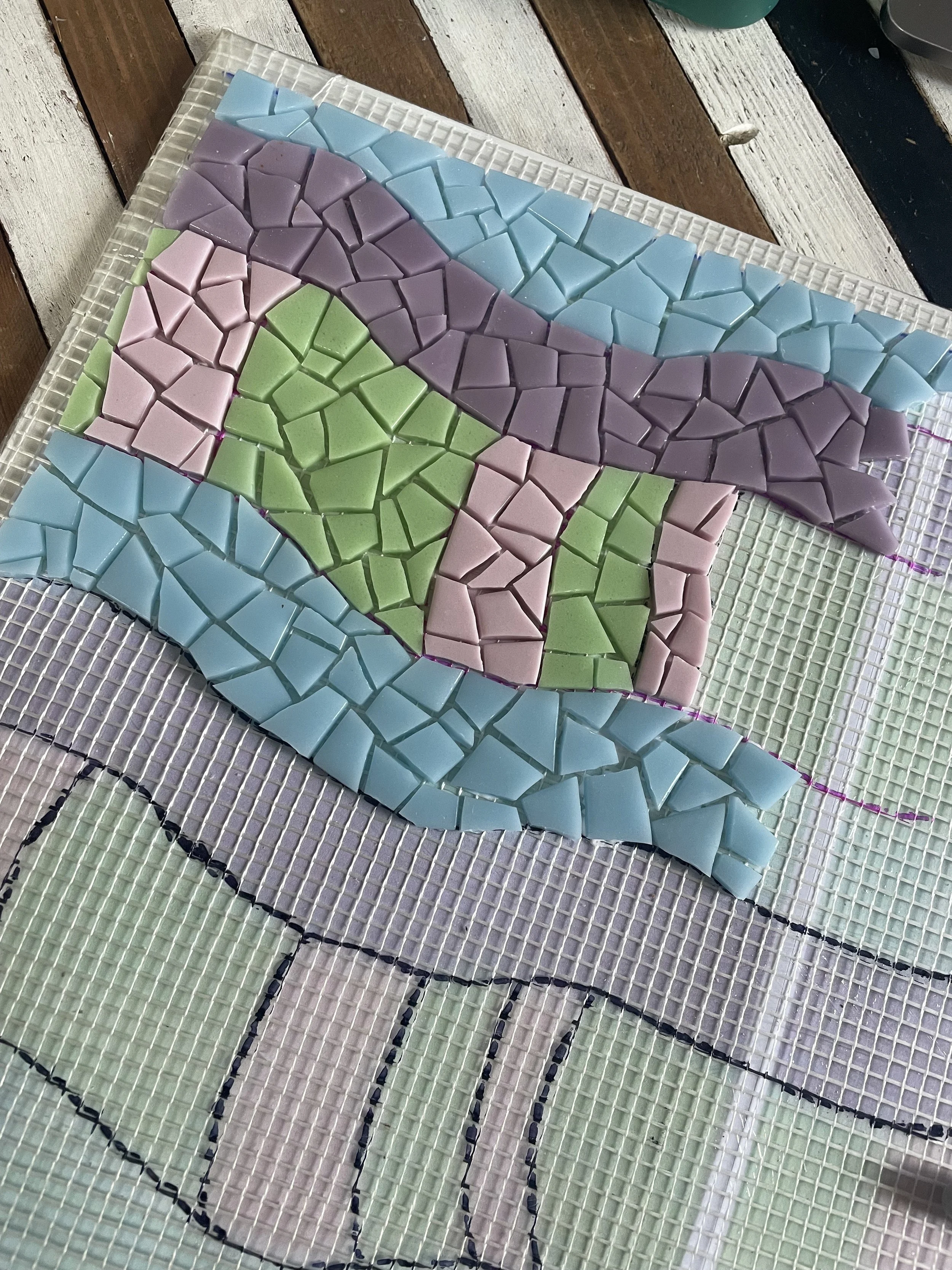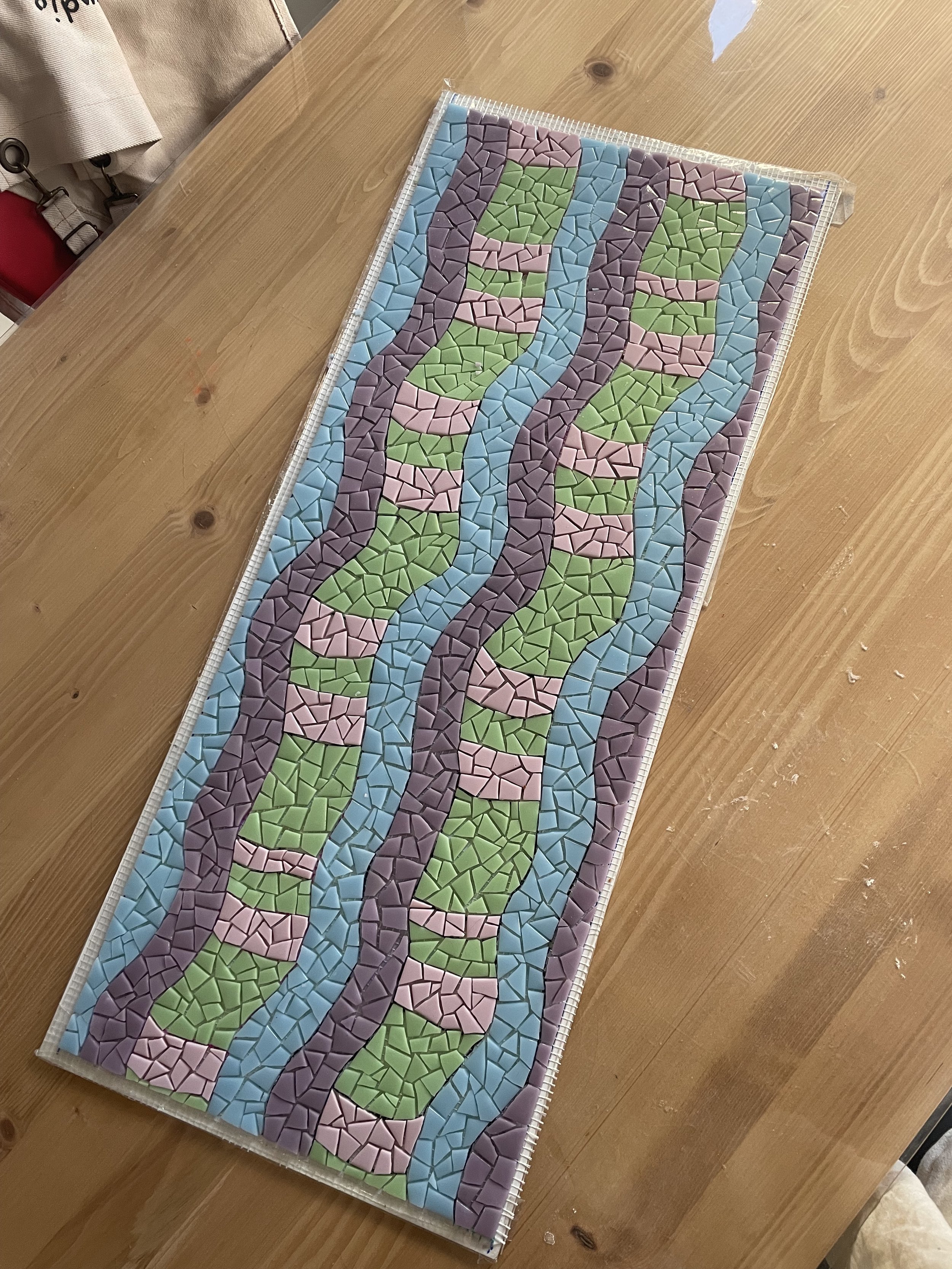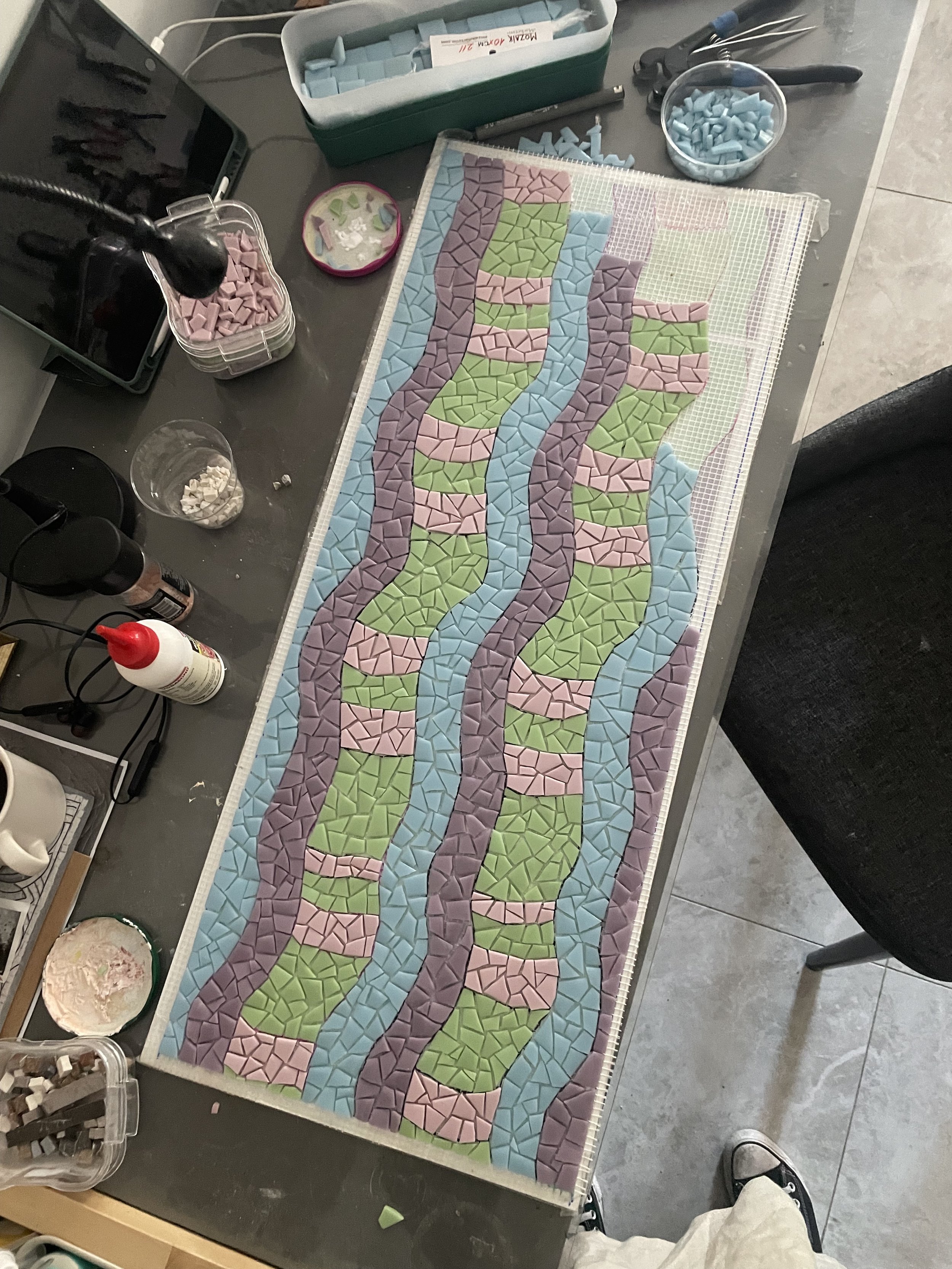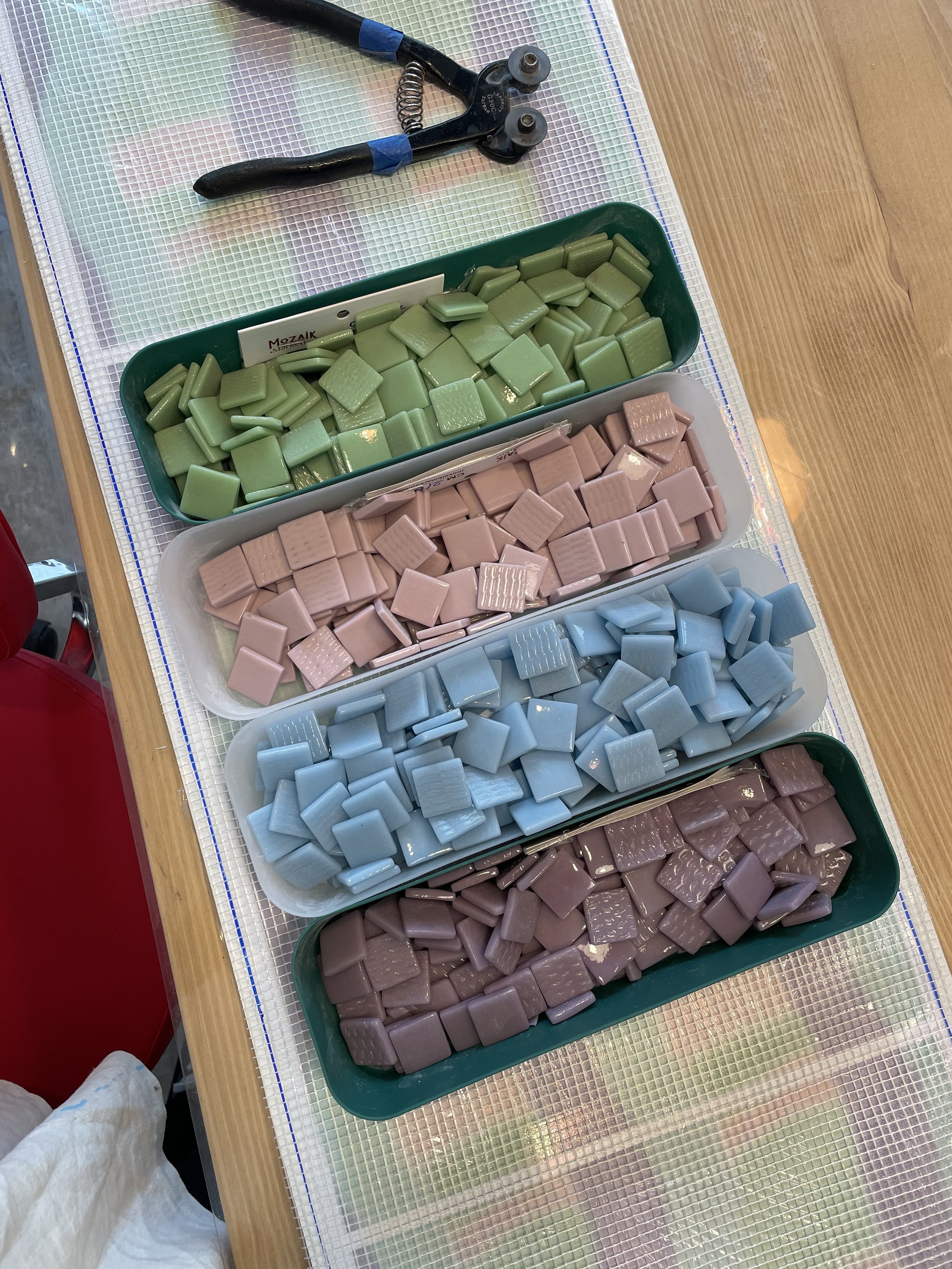 Renk paletinde pastel tonlar tercih edildi: mavi, yeşil, mor ve pembe. Derz rengi krem olacak.